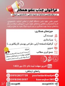 📢فراخوان جذب عضو همکار در دوازدهمین شماره از نشریه علمی-دانشجویی شوکا